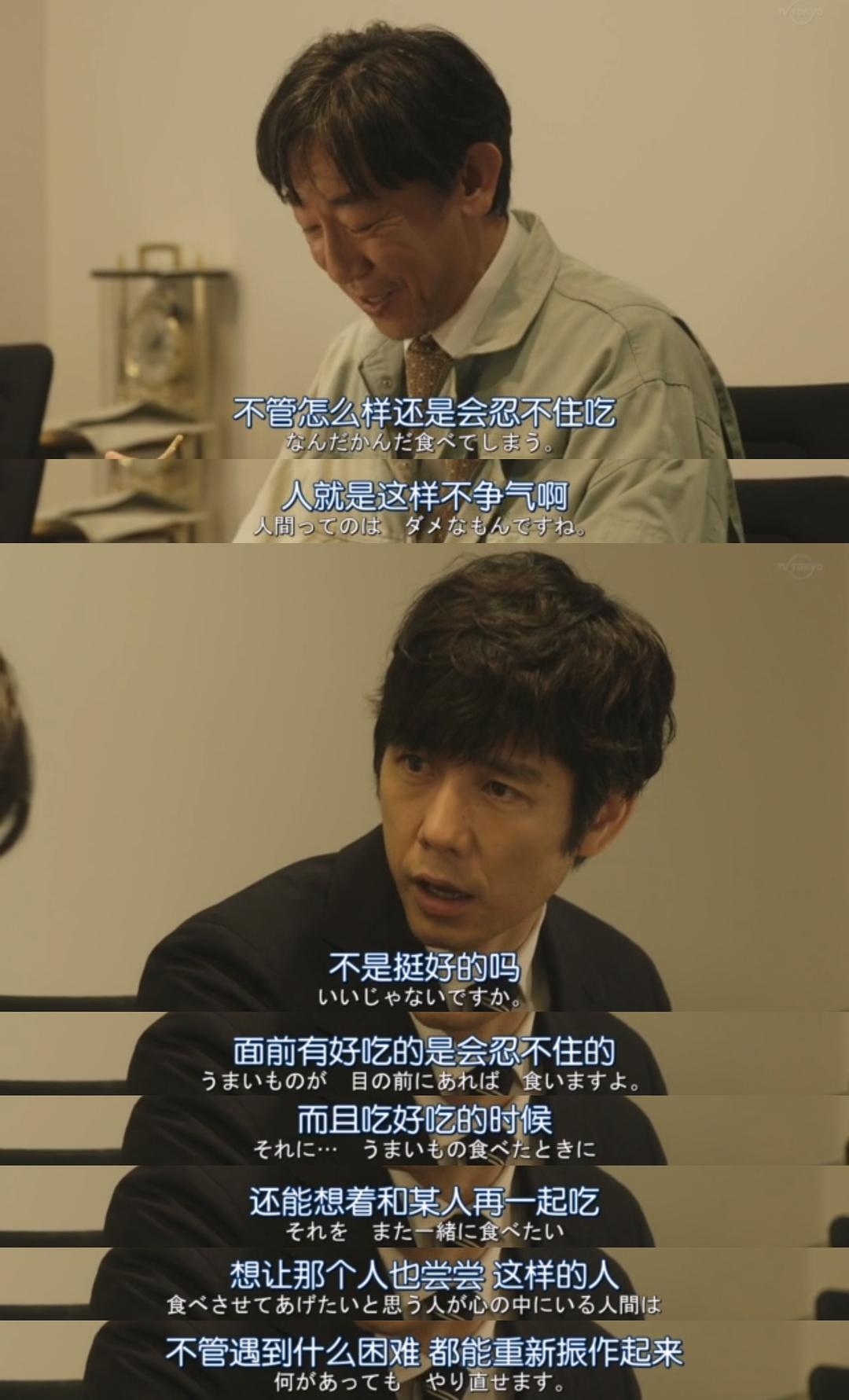 2019遭遇失业,备孕失败,疾病复发,心情很低落。生日那天,发现更新了新年特别篇。看完感觉被治愈。人生不就是磕磕绊绊中前行嘛。剧中贤二那句生日快乐对我来说格外应景。看完起床做了我迈入35岁的第一餐,复刻史郎的料理。吃完收拾心情,无论如何,还有阳光,美食,家人,鲜花,值得我不辜负。春天应该快来了吧