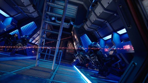 飞船熄火后,桥上的两人漂浮起来。