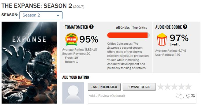 昨天之前我没有看过第一季。因为双螺旋和十二只猴子(电视剧)给我的观感太坏,失望太多,脑子里已经把Syfy自动屏蔽了。昨天又看见友人的推荐,抱着“再吃一次垃圾食品也不会死”的情绪下载了S2E1,十五分钟之后就关掉,下载了第一季一口气看完,而S2E2是最后的高潮。Syfy,all is forgiven!nn以现在看过的12集为标准评价,The Expanse是十年来最好的太空歌剧作品。星战已死,只剩下乔治卢卡斯的生意经。太空堡垒卡拉狄加在第三季之后转入政治说教,只能放弃。而广受好评的Firefly,不但一季而亡,在细节表现力和科技的严谨程度上比The Expanse差一个层次。nn“太空歌剧”(Space Opera)向来是科幻影视中最难拍好,最难讨好观众的一个子类。这个名字本身就有点贬义,就像星战1,2得到的酸葡萄评论那样:“披着星际世界外衣的王子公主故事”。然而星战1,2确实是伟大的电影,不是它的故事有多好,而是在当年那个技术背景下创造出太空战舰,死星,空间战斗场面等等耳目一新的科技表现。再加上黑勋爵和尤达这样的偶像级人物,成就了它的伟大。然而星战在技术细节上的粗疏,1,2中就有反映,比如“挥舞光剑格挡激光”之类科学笑话。那时还无伤大雅,到了星战3着力构造地面的异世界时,就全面爆发出来,弄成了一部拙劣的儿童奇幻片,收获无数恶评。至于星战的“前传”和“后后传”,那是和漫威出品一个性质的东西,不值得讨论。nn太空歌剧的本质和难点都在于构造异世界,并反映人类(或者外星智慧生命)在这些异世界中的生活状态。文学作品在这方面有天然的优势,既可以花费大量的篇幅细腻构造细节,又可以忽略那些照顾不到或者想象不出来的东西。但影视的束缚就大了:大致固定的篇幅决定了你必须简明扼要直切重点,而画面的形式又把镜头中的每个世界细节暴露在观众审视之下。阿西莫夫的《基地》系列就是超一流的太空歌剧。他很聪明地忽略了绝大部分技术上的世界细节,而把重心放在故事发展,人物塑造和形而上的讨论上。否则以这部作品的时间和空间跨度,累死他也写不完,还很有可能弄巧成拙(阿西莫夫在他那个三巨头的级别,从来就不以技术功底和想象力著称,比起“钻石一样硬”的克拉克差得远)。因此,我谨慎不看好目前正在酝酿的“基地”系列电影。nnThe Expanse的故事和人物塑造并不算太出色。故事上,Syfy编剧乱搞支线,切得七零八碎的坏习惯仍然存在,幸好这次有一部优秀的科幻小说作为原本兜底,还不至于搞到双螺旋那种失控的程度,在第二季慢慢收拢了。人物上,男一号不但长得像权力的游戏中的囧哥,角色风格也像,都是第一眼路人,看久了才能慢慢顺眼。男二号的表演就比较挫了,在狂躁暴力与世故深沉之间把握得很不好,经常生硬切换。女选手几乎没有一个亮眼的,尤其是毛小姐和英国腔的黑妹子,怎么看怎么不顺眼。男一号原先的女友其实还行,可惜第一集就领了盒饭(同样领盒饭太快的还有火星军官Lopes)。真正的例外是烟灰嗓子的印度“wupo”,这位演员在反恐24小时中演恐怖分子老婆的时候就给人深刻印象,这次仍然抢眼,那种正邪混杂的复合人格和骚包炸天的衣品都很有意思。还有一个小配角就是老黑人手下的女副官,寥寥几个镜头,但气场强大风格邪魅。nn本剧真正强大的地方就是细腻考究到惊人的世界细节,和非常严谨又不失想象力的近未来技术考量。出现在一部电视剧中,尤其是向来cheap的Syfy电视剧,真是一个异数。有多好呢?比经典的太空堡垒卡拉迪加好了整整10年(也就是实际的时间差)。比胡吹海吹的《普罗米修斯》好了两个数量级。《星际穿越》和《地心引力》牛气吧?但本局的技术自洽度比它们更好,bug比它们更少。这种成就不止是投资的问题,这次的编导组和技术指导真是有神级的发挥!nn下面以S2E2后半部的战斗场面作为例子,看一下细节究竟有多美:nn——战斗前船舱排气减压(以防击穿后着火和气流肆虐),人员穿压力服(以防击穿后失氧),自由浮动物体(咖啡杯)收好(以防战斗中乱飞伤人),这种类似于空间战军事条令的细节,其他短评都已提到,这里不多说。但请仔细想想它们的合理性和创作者的周密考虑。nn——逼近空间站时,Rocinante紧贴在运输船的屁股后面,这是雷达盲区。按照计划,Rocinante要冒充船体脱落漂浮物体逼近,于是它从盲区中出来的时候主发动机并未点火,能看见它滚转而出。细节是:我们能看见只有船头部一侧的姿态调整推进器(thrusters)喷了几下!这才是造成自旋和漂浮物假象的正确操作。更精妙的是,镜头切回船舱里,刚才平稳悬浮的咖啡杯转起来了——真空失重状态下的相对运动,船的自旋并没有转导到咖啡杯上。本剧技术指导脑子里是建了多好的一个现场模型,才能想到这点!反观其他科幻影视,经常是飞船逼近目的地的时候尾部主推进器还烧得透亮。漂亮是漂亮了,但恰好弄反:这时候是减速,尾部得熄火,前面的制动推进器才该点火。请复习牛三和基本的轨道运动常识。 nn——很多人对飞船近战中使用加特林速射炮表示不解,因为这在空间战中显得太low,而且小炮应该无法击穿船壁。据说原著中确实不一样,致命一击使用的是鱼雷。然而,在本剧的设定系统下,这是完全合理的。这是一部近未来硬科幻,技术上以现在的科技为底本,但都有进步。太空船设计中至关重要的一个因素就是船体总质量。使用喷射推进的