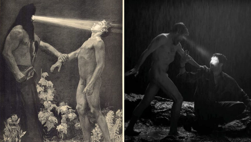 Robert Eggers:是的,和《女巫》(其故事背景在摄影技术诞生之前)相比,这是一种巨大的快乐。有大量的照片,所以在重建影片的物质世界时,要容易得多,因为我们有这么多的照片证据。另外,在故事节奏和神话主题上——我对艺术史很感兴趣,我喜欢象征主义艺术。当然,罗伯特·帕丁森和威廉·达福饰演的角色本身不会意识到象征主义运动正在这个故事所处时代的同时发生着,因为他们生活在这个不起眼的灯塔里。但是[象征主义艺术家]Jean Delville、Sasha Schneider和Arnold Bocklin等人的作品启发了电影中的美人鱼形象,也影响了我们如何处理电影中最终的形象设计。