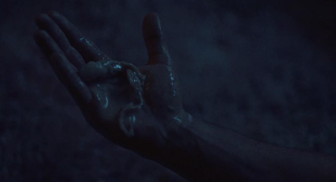 这里给了生蚝一个特写,而后在老夫妇劝说后男主吃了生蚝,期间四人出于消遣抽了大麻。女主与老妇人聊天说自己是生物化学专业,自己对海洋生物研究感兴趣。(此时电影过半,这几句话才是点明了电影主旨),而后透风四人看到夜晚奇景以为是抽麻的幻象没在意。