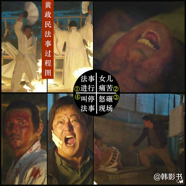 Q:其实导演在电影里也埋了很多伏笔,比如黄政民换衣服的时候让我们看到他穿了裈(日本传统内裤)。我个人认为在电影里非常重要的角色但是却很少被人提及的,就是辅祭,辅祭是电影里唯一可以和日本人直接用日语对话的人物,这部电影看起来这么可怕的原因有一部分是因为超自然现象,但也有一部分是因为电影太真实了。电影里有一场戏虽然很真实但是却用了神话的表现方法,比如洞窟的戏份。为什么洞窟的部分要选择一种像是发生在另外一个时空一样的表现手法,好像神话一样?