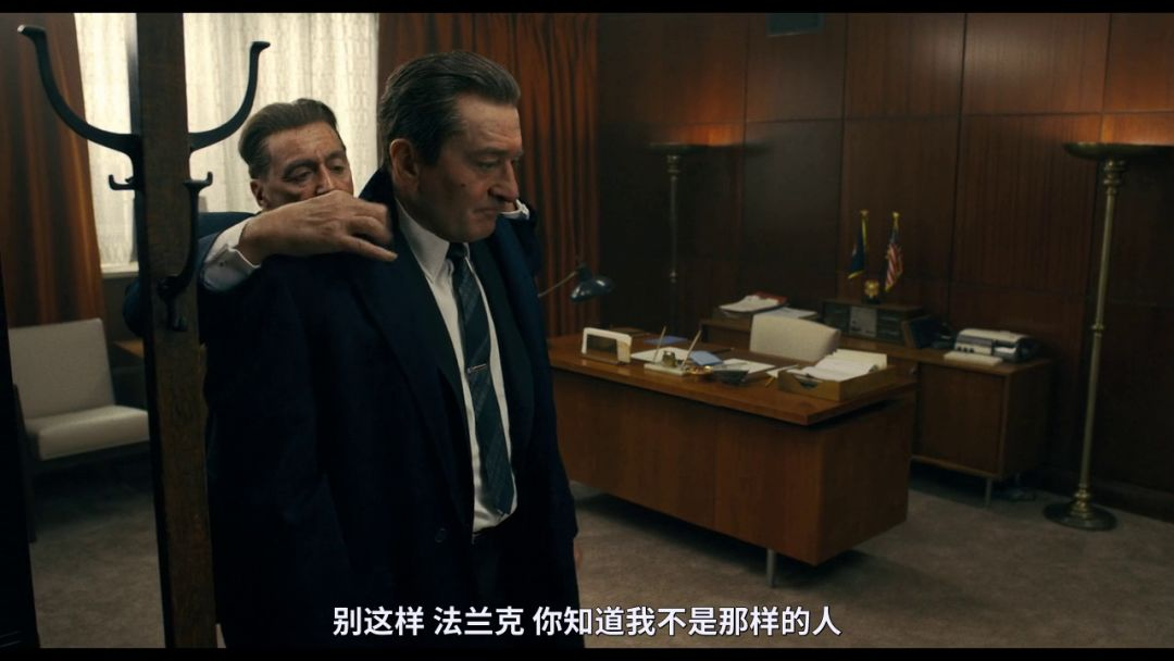 顺便称赞一下虽说有点恐怖谷但确实很还原的服装化妆特效,不要觉得不够像老德年轻的时候啊,因为效果着实很像Frank Sheeran了。