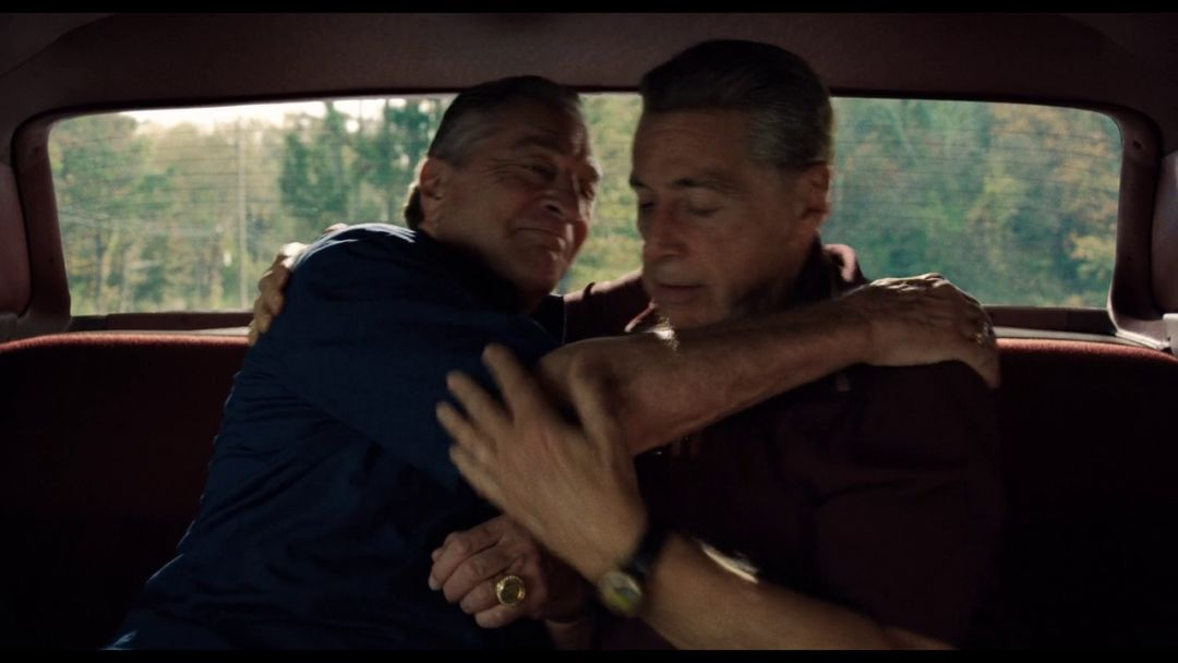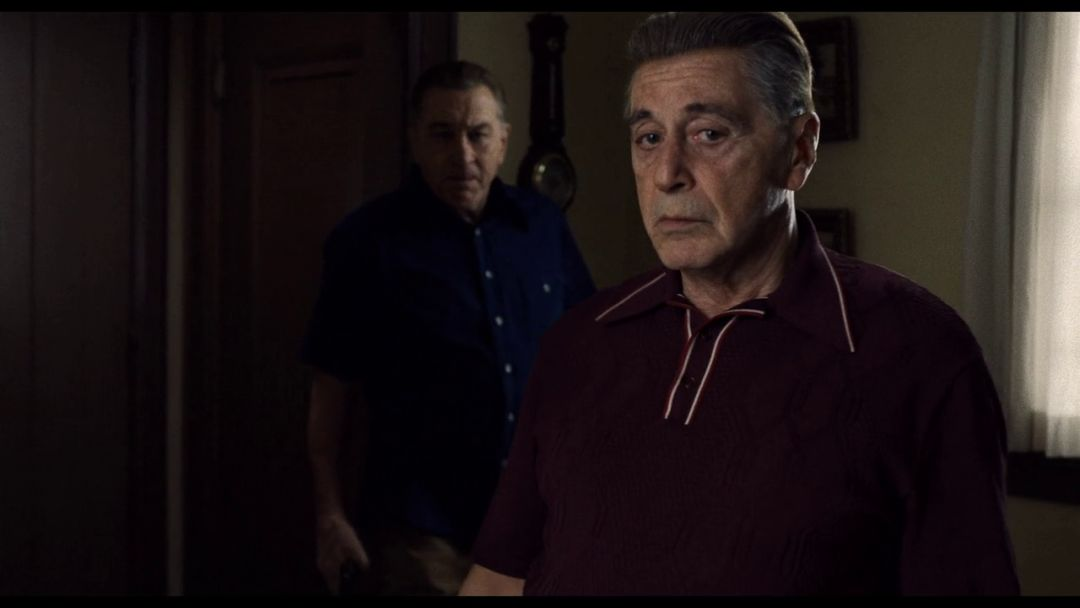 前面我用了怀旧标签去贴《爱尔兰人》,而怀旧这个标签并不能完全说是褒义,昆汀的《好莱坞往事》一样怀旧无比,但换来却是平淡缓慢的叙事,这是相对于昆汀以往的暴力美学来谈论的。