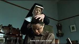 首先,这是什么地方——玛德琳庇护所?这是一个真实的地方,而不是虚构的环境。玛德琳庇护所所也被称为“玛德琳洗衣厂”,这是一个由爱尔兰天主教徒经营的营利性组织。在这个地方,天主教修女是经理,因为他们安排并教学妇女在那里从事洗衣服的工作。修女是主管,因为他们监视妇女的工作过程并申明工作规则,例如“工作时不说话”。修女不但是老师也是兼职美发师,因为他们在尝试教育妇女时会剪掉她们的头发。修女也是游戏评委,因为他们要求妇女们赤裸裸地站成一排,并对妇女的乳房和阴毛发表评论。修女某种意义上还是电影爱好者,因为他们播放有关修女的电影来庆祝耶稣的生日,而且每个人都需要在那里观看。那么,在玛德琳洗衣厂中,有什么角色是修女们不可能担任的呢?有一个答案我比较肯定——他们不像在那里工作的其他妇女一样是道德堕落的人。为什么?也许是因为他们信仰上帝,或者是因为他们将生命奉献给了神圣的事业,或者可能是因为他们似乎与任何人都没有性接触,或者你可以告诉我另一个原因。
