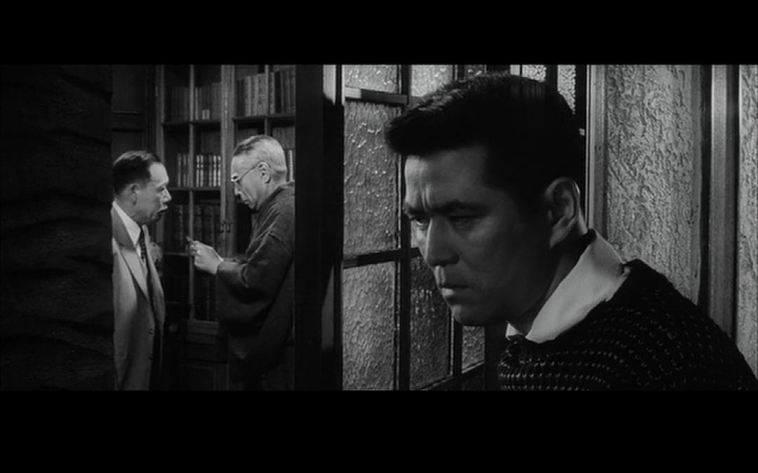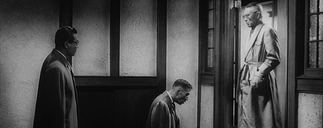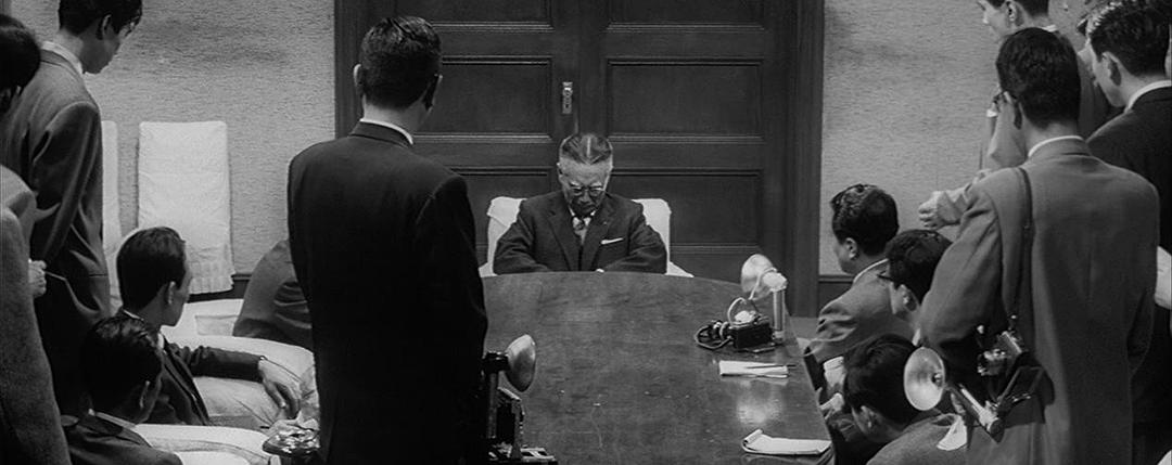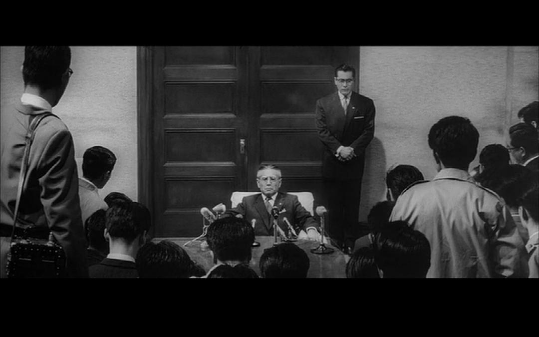 岩渊:“据说从尸体上发现大量的酒精成分……我简直不相信……他……会那样……啊,我失去了不可多得的……我倒不是出于偏爱才这样说,不论是才干,不论是活动能力,都是一个无懈可击的秘书……而且还是我的好女婿,我现在只能茫然自失……”