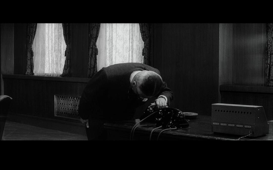 岩渊恭谨地向电话低头行礼。