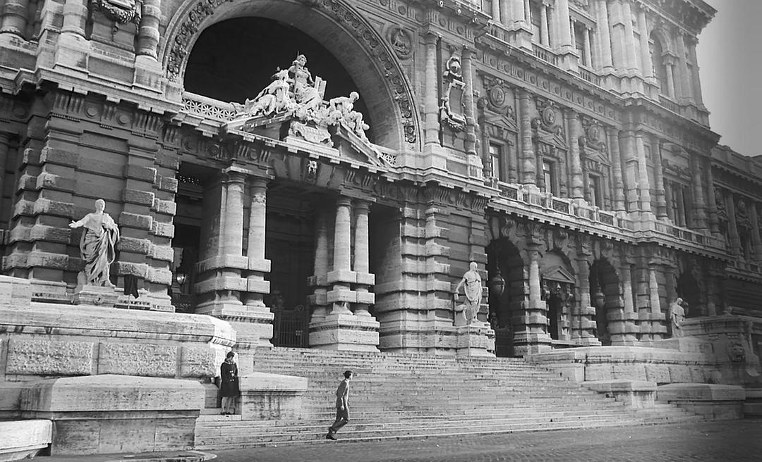 当K在进入法院之前,K经过了一群衣不蔽体的人群,他们的胸前都挂着数字号码牌,我们马上可以由此看出这明显是在反应二战中的集中营和犹太人大屠杀。而在法院面前出现的这样的景象,似乎告诉了我们电影当中的法院与形而上的各种人类文明建构相比,更像是历史上真实存在过的各种极权政府的影射。事实上,在二战以后,对卡夫卡的重解读中,就有将卡夫卡与当时的历史背景相结合,将卡夫卡视为一个预言家,卡夫卡从形而上的卡夫卡变成了历史性的卡夫卡。正如阿伦特所评价的: