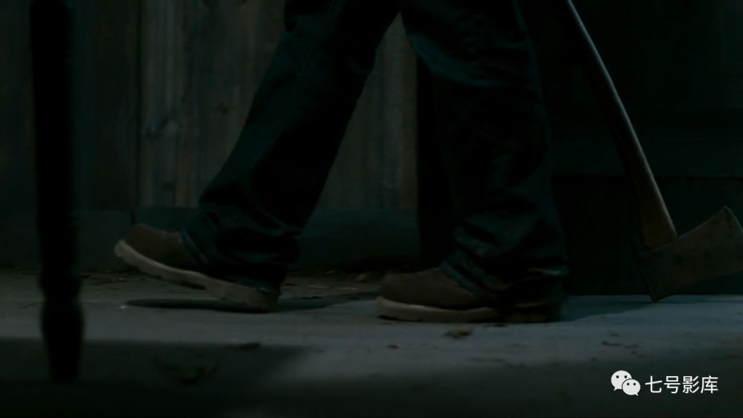 而对于男主角,导演在15分钟之前用两个镜头让观众和女二号对男主角产生同样的怀疑,一个是拖着斧头的画面,一个是拿着锤子。导演在拍摄这两个镜头时所用的拍摄角度同恐怖片中拍摄变态杀人魔的角度是相同的——忽略面部,突出人物的行动给人紧张和压迫感。