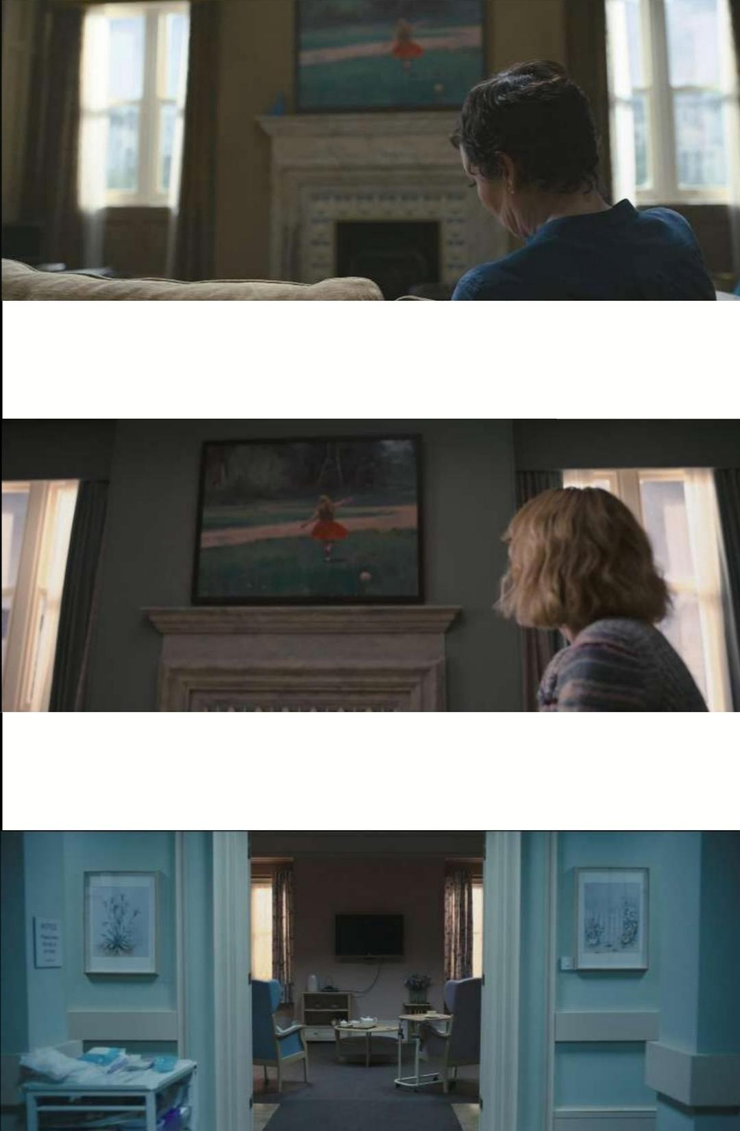 2.空间上的迷失(片末告诉我们老人一开始就住在养老院,不停切换的场景从公寓-诊所-养老院-自己家还是女儿家,是在老人脑中一直不能理解的)