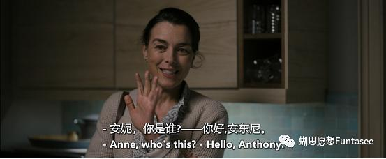 1. 第一层-观众视角:安东尼脑海中,由于前面“保罗_比尔”说这里不是自己的家,所以安东尼提出疑问,“安妮_凯瑟琳”欲言又止,潜台词“可怜的老家伙,这里是詹姆斯家,不是你的公寓”
