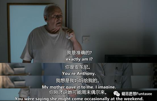 2. 第二层-疗养院视角:安东尼在疗养院病房中,面对凯瑟琳时也问过相同的问题,而凯瑟琳欲言又止,潜台词“可怜的老家伙,这里是疗养院,不是你的公寓”