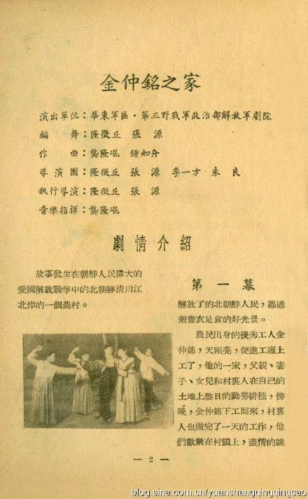 時間到了1951年了,在一本記載著中國舞劇劇目簡表中我又看見了朱嘉琛的名字,注意演出單位已經變成了華東軍區第三野戰軍解放軍劇院,此時的朱嘉琛已經進了部隊,我猜是由黃宗江介紹的或者是她的父親,其父據傳是朱欣陶,但是沒有詳實資料證實,只知道朱欣陶至少有倆個女兒的。