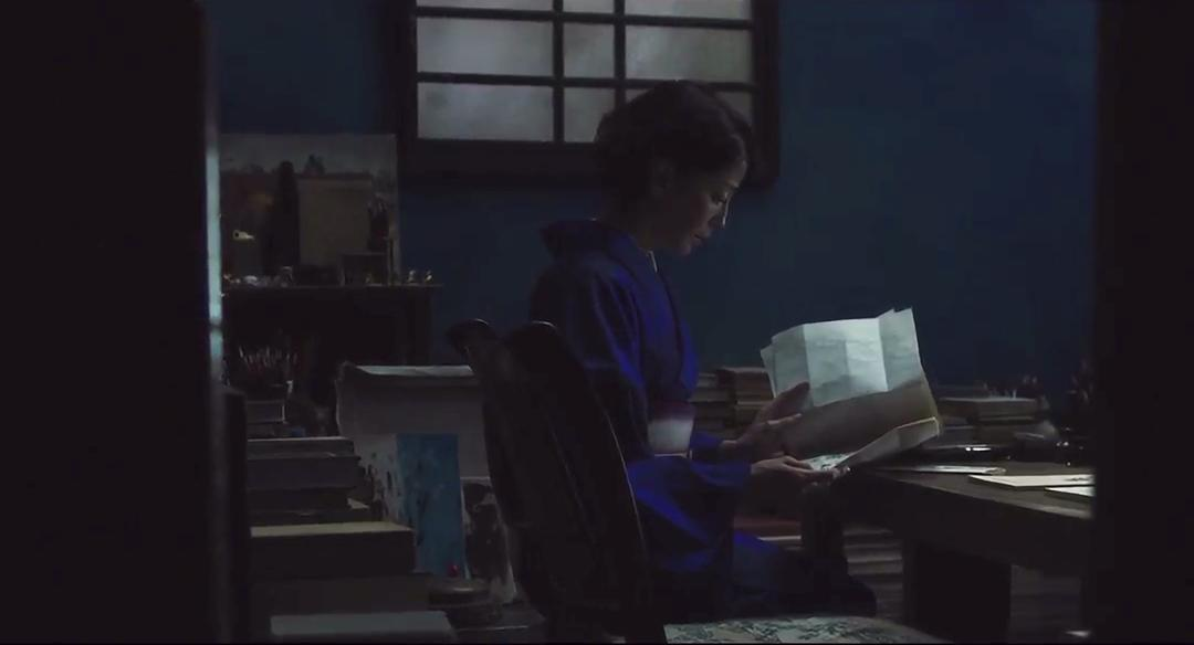 一个有意思的画面是:最终妻子的和服才成为纯粹的蓝色,在最后一部作品中,两人真正合二为一。