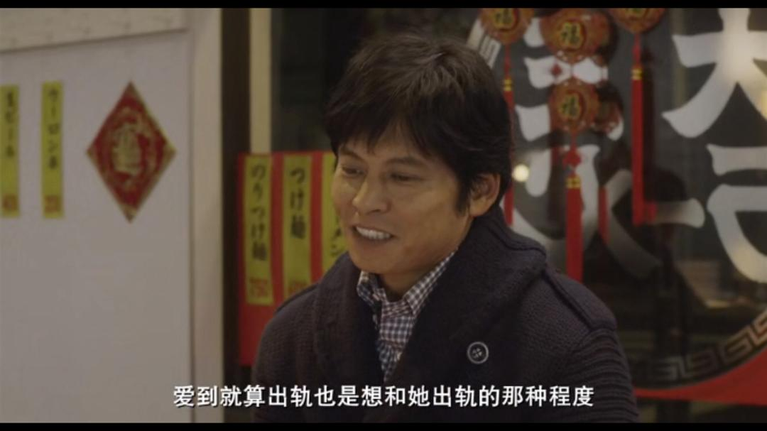 2.个人最泪奔的地方,当他的太太和别人去约会的时候,他和儿子去跑步,父子俩躺在草坪上,三村说,阳一郎,当我最爱的人抱着你露出了最幸福的笑容的时候,我知道我最爱的就是你,剧中第一次涉及到父子情,这时候,他突然站起来,说,“”好想看到阳一郎和自己妻子结婚的时候,好想和阳一郎一起喝酒,我突然泪奔,我是有孩子的人,他说的这些都是我所渴望的事情,我能感受到他内心中的不舍和不甘,突然我不能控制的大哭,把我老婆吓了一跳,问我怎么了,我不说话,就在那哭,再后面电影说了什么完全不记得了。那一刻我竟然完全沉浸在他的世界和他的感受,这不就是电影最大的成功处吗。