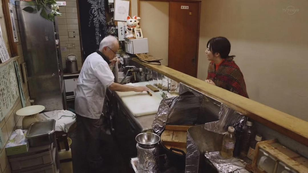 说到鯖寿司,剧组居然选到曾经学生时代住家门口的一家店,天忠。看着木村文乃坐的那个位置,应该算是最佳。一伸头就能看到制作全过程,和料理人搭话也方便,离炸天妇罗的地方也远,当然还有一点,一扭头就能看到屋内左上方的电视????