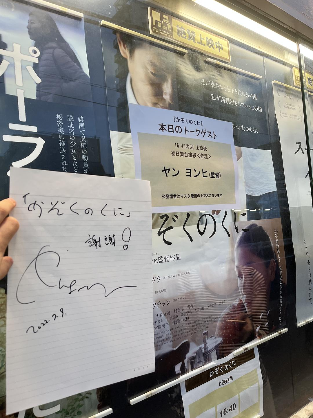 舞挨结束后,导演说有《家族的国度》小说文库本可以买,还可以签名。不过我看了一下书不多,果然等我排到的时候书已经没了,最后一个人热心人贡献了一张纸,导演给我签纸上了。