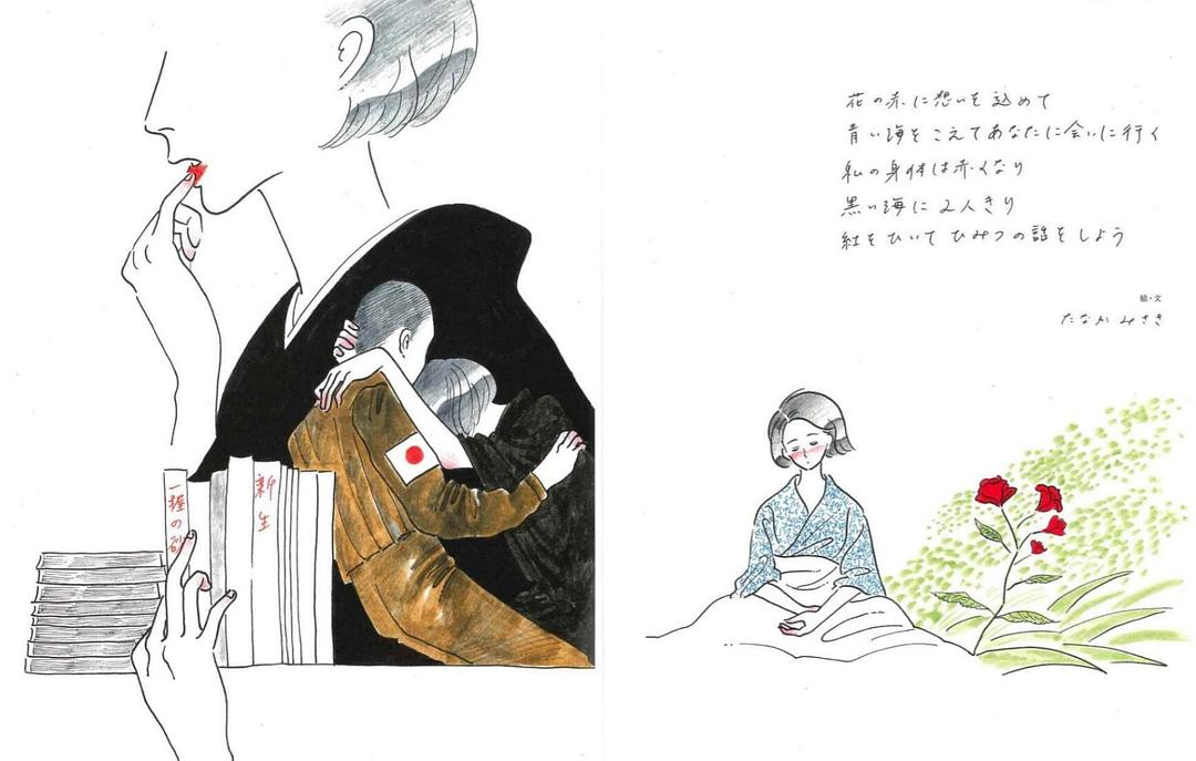 但户枝无论再怎么过度,她也什么都留不住,什么都保护不了,什么也做不到。就算怎么抓住中尉,自杀式袭击仍要发动,中尉仍要牺牲,就算再张开双臂将孩子护在怀里,仍抵挡不了导弹落地,孩子仍要牺牲,就算多么大声怒喊:我讨厌战争!岛上居民仍要拉开手榴弹,他们仍要牺牲。于是户枝也只能拿着短剑,穿上丧服,陪他的爱人赴死。在战争面前,户枝显得太渺小,太不自量力了。