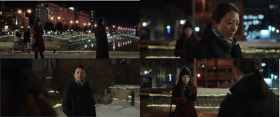 冬日的小樽,银装素裹,新春偷偷带着男友,和母亲允熙来此地旅行。二十多年前的那对地下恋人,如今已分隔日韩两地。一封封信件中藏匿着一段久违的牵挂和思念,短暂的旅途中,她慢慢揭开了这段被雪藏的感情。在新春的撮合下,两位昔日的爱人终于得以相见,至此电影也进入尾声。作为一部爱情电影,导演却十分吝啬地只交代了一个重逢的场景,前面九十多分钟积压的情绪在结尾的相遇后匆匆收场。这种讲述方式让人感觉在看《情书》,节奏舒缓,气质也非常的“日系”。过去二十年间,允熙始终带着面具和伪装生活,她嫁人育女,在世俗的捆绑下耗尽自己的青春。得知丈夫要结婚,她如释重负,这份“亏欠”终于不再需要去补偿。女儿问允熙,“你为什么不谈个恋爱”,也许恋爱后不会像现在这样形单影只,而另一边,允熙在日本的初恋,被人问起同样的问题。这个问题看似顺理成章,自然而然,但对允熙来说,对分隔两地的这对昔日恋人来说,无疑是揭开了心底的结痂。