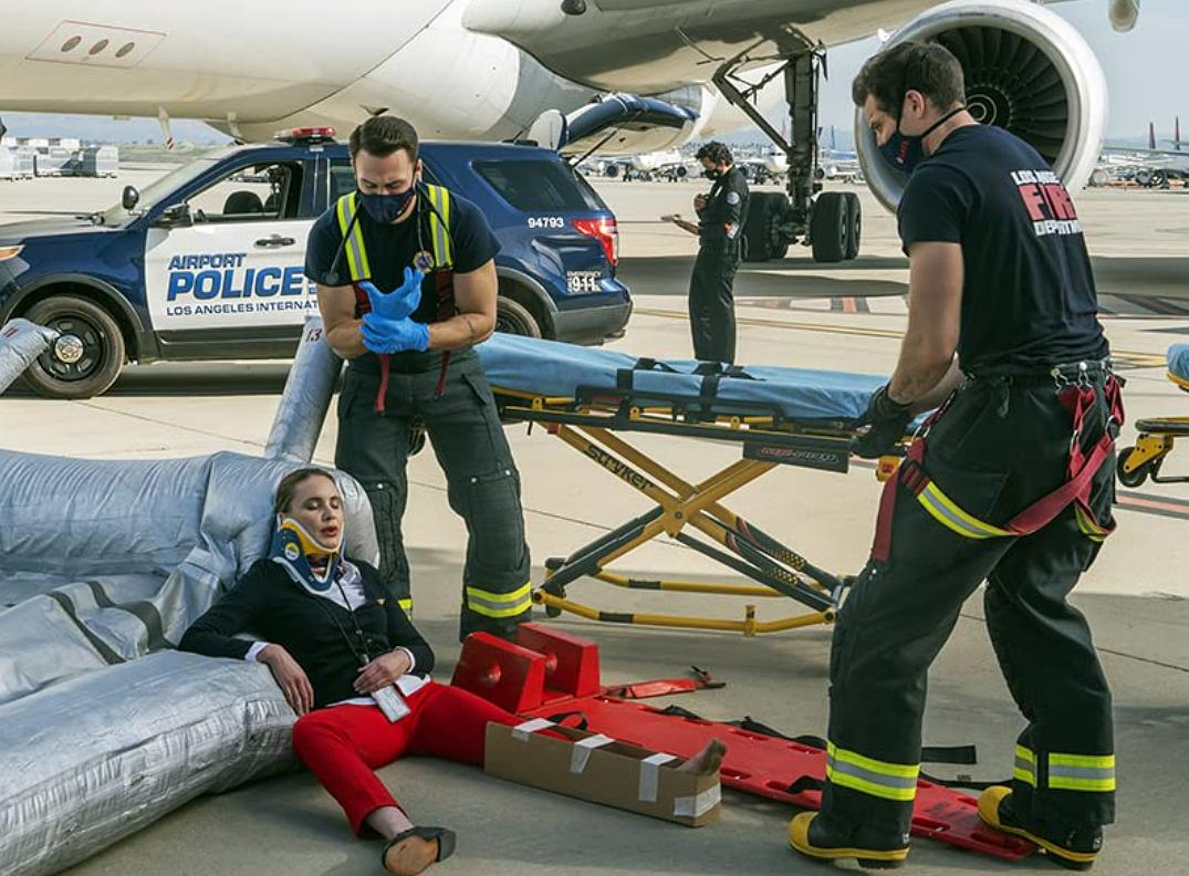 这几张官方剧照展示了两种不同的消防服,但无论哪种消防服都不是洛杉矶消防局真实的消防服,十分令人费解。我不知道为什么剧组要安排演员穿这些假的消防服,并且始终看上去都是那么光鲜艳丽、一尘不染。其他涉及LAFD内容的剧集不是没有,穿假服装的我还是头一次见到。我猜测这很可能是某个消防公司再利用本剧宣传他们的产品,保持他们产品的整洁,穿在演员身上精神十足,远比安排118冲进火场救火熏得一身黑要重要得多。这可能也是《紧急呼救》中发生火灾屈指可数的原因之一吧。