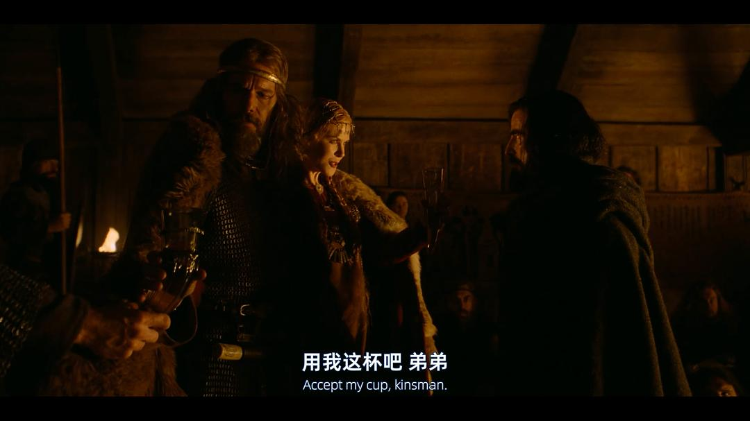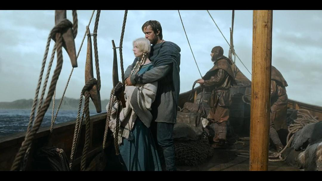 我们在影片中看到的裸露的石山,与皑皑白雪,看到的溪流与村庄,海船风帆,在铅灰沉重的积云下,是倔强着不肯屈服的高耸群山,我们看见的匮乏的物资,动物本能的惯性,机缘巧合的命运,变幻不安的人心,和那些挥舞着剑与盾在热血中升腾的不朽灵魂。