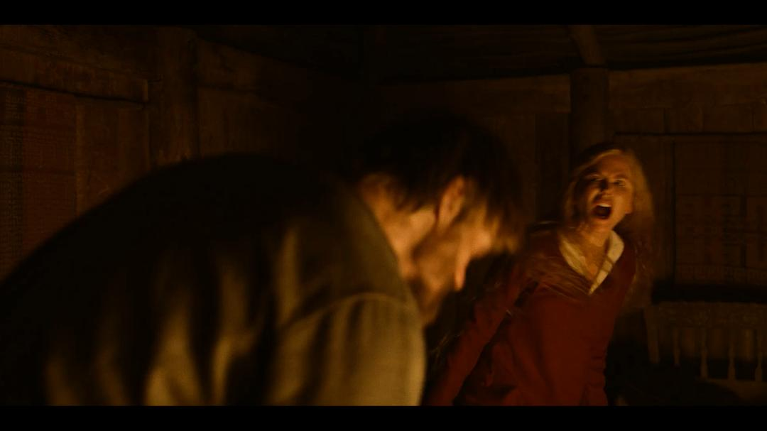 不清楚艾格斯原本设想的成片样子,但为了个人风格从单一固定角度拍摄长镜头,而舍弃从不同角度、景别拍摄,缺少变化性吸引观众注意力,对于商业片来说无疑十分冒险,可话说回来,如果导演放弃个人风格那还有什么看头呢?丢掉风格再精致也是莎士比亚的作品。