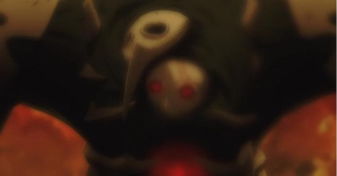 渚薰性感地站了起来,面前是一个巨大的LILITH状人体,可以看出面具基本上就是旧作中LILITH戴的、新作中LILITH没有戴的面具。身体很瘦,如同干尸,外面由白色的布包着。这是什么东西,目前没人知道。