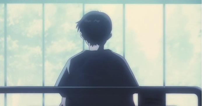 透过(二楼?)窗子看到真嗣被打之后仰卧在地上的俯角镜头与真嗣望向天空的垂直仰角镜头之间,序添加了一个表现真嗣被打后流着鼻血、左臂抬起小臂搭在额头上、左手盖在左眼上的鸟瞰镜头(我甚至还好奇模仿了一下,实践证明这个动作其实非常不舒服,也极其不自然23333);序添加了真嗣“为什么我驾驶eva就要给人打”的内心独白