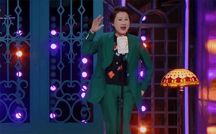 抹完眼泪,在全场不知道该哭还是该笑的时候,她立刻很敬业地接着演了下去,用一段数来宝式唱跳结束了整段表演。