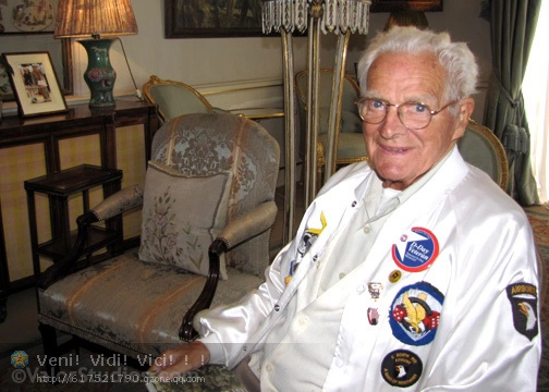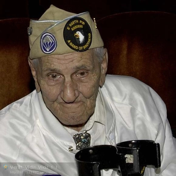 19.比尔瓜奈若。1923年4月28日在宾夕法尼亚州费城出生现年89岁1942年至1945年服役于第101空降师506伞兵团2营E连退伍军衔:上士。在1941年得到他的高中文凭,由于他的工作,他获得免服兵役,但没有使用它。1942年8月31日在他的家乡,瓜奈若入伍空降兵,并开始在训练营托科阿训练。因为他的姓氏,他有个绰号叫“淋病”。在空降诺曼底前他得知他的哥哥亨利在意大利蒙特卡西诺阵亡。在登陆后的一次战斗中显示了他对德国的强烈仇恨(他违背了温特斯的命令)。1944年6月6日.上午在温特斯的带领下,他参与了雷库尔庄园战役。他在1944年10月中旬在荷兰,开车时被狙击手击中右腿,摩托车失控翻倒他的右胫骨骨折。10月17日他被送回英国治疗。虽然从伤病中恢复,他不希望被分配到另一个单位。他在逃离医院时被捕,这是擅离职守会被送上军事法庭。医院告诉他让他在待一个星期,然后送他回荷兰。1945年1月3日瓜奈若在巴斯通为解救朋友乔:托伊失去了他的右腿。由于这次受伤,对与瓜奈若来说他的战争已经结束。比尔瓜奈若获得过一枚银星勋章、两枚铜星勋章和两枚紫心勋章。1945年3月回到美国,当过印刷工,推销员,木匠,并且结了婚。1967年当被确定为“百分比丧失劳动力”后,退休在家颐养天年。他有5个孩子,老大也参加伞兵并在越南服役。他是E连各类聚会的积极发起者。
