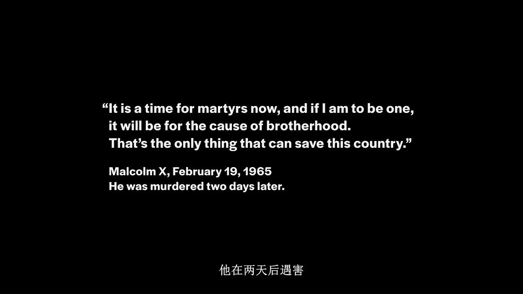 因为这段信息量很大,补充两点题外话:n1、《It's All Over Now》的故事电影中说的差不离,说下“英伦入侵”的一些内容。摇滚乐本质是启发于黑人布鲁斯音乐的,最早也是从查克·贝里等黑人歌手开始的,猫王更多是将这些进行了白人化改造。而“英伦入侵”是英国的一批摇滚乐手反向输出到美国并统治榜单,这一切的起点披头士乐队,它们早期每张专辑基本都有几首歌翻唱自黑人音乐的作品,黑人歌手小理查德也是主唱保罗·麦科特尼年轻时的偶像。n2、有研究发现《Blowin' in the Wind》受启发于黑人圣歌,修辞上融入了圣经的风格,尤其是歌词中反问的使用。可以联系上片中马尔科姆·X对歌词的强调。