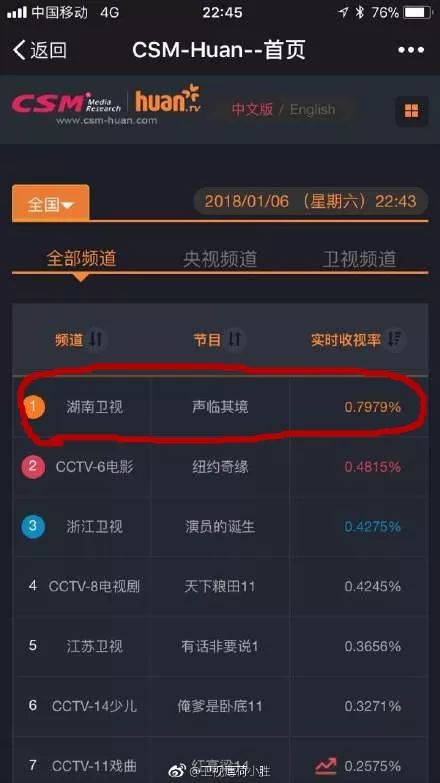 节目首播后,实时收视率立马雄踞全国第一,目测这是要沸腾的节奏啊!