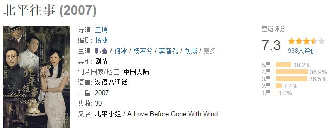 与此同时,这两年她还接了几部抗战剧,反响还算相对不错。一部是大腕云集的《北平往事》,还有一部《地上地下》豆瓣评分都在7分以上: