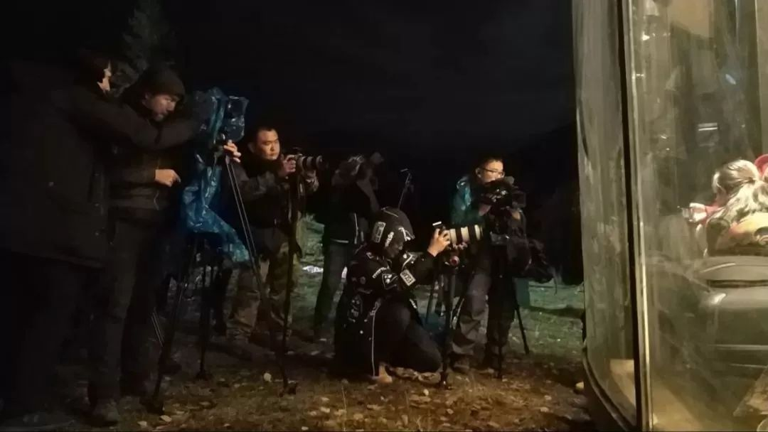 阿尔山的晚上可不像内陆,下午16:00太阳就会落山的北国雪夜,在室外连续拍摄3小时是一种怎样的体验?陈星宇提到,这次拍摄,摄像机的三脚架会因为温度太低,常常在户外1小时后就全部冻硬,“正常情况下三脚架固定,移动镜头只需上下左右摆动机器,但这次拍摄时机器想要转动,只能靠人工扛起三脚架挪方位。”