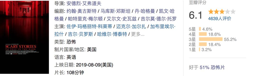 豆瓣6.1、IMDb6.3的评分,烂番茄79%新鲜度,在恐怖片类型里已经算中上了。n