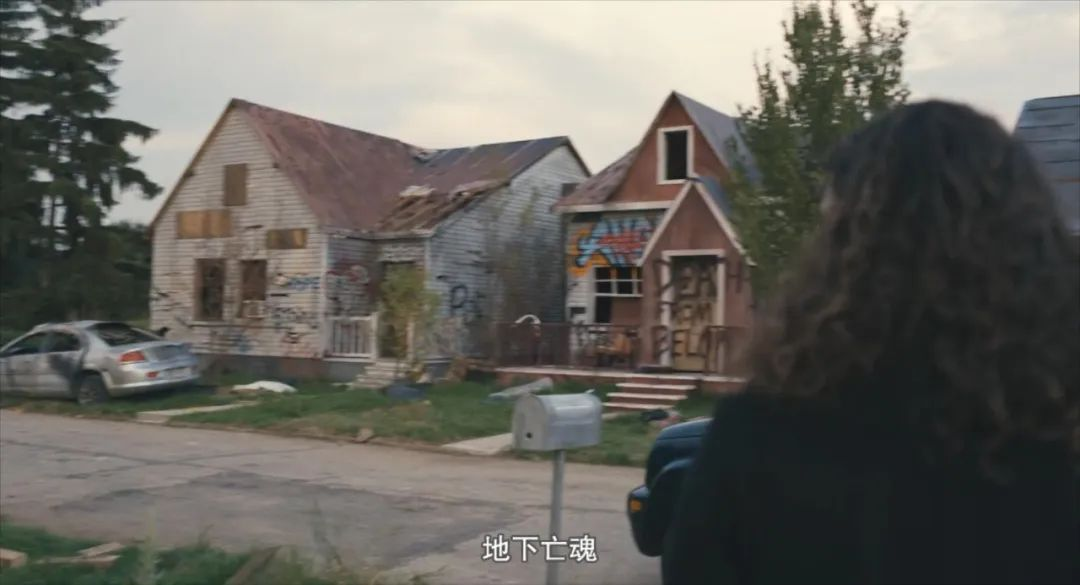 片中女主人公为了找工作,在网上租了一家底特律的房子,当她到达后,发现那里是一个荒废的街区。n