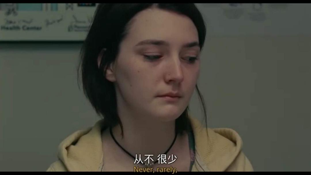 在影片进行到第60分钟的节点上,《从不,很少,有时,总是》这个拗口难记的片名的含义终于被揭晓。在我们从未看见全貌的诊室中,社工向Autumn提出关乎她健康和安全的问题,并希望她用“从不,很少,有时,总是”中的一个频率回答。社工轻快地表示不需要有压力就当是答多选题,但这从“你的性伴侣是否拒绝使用避孕套”到“你的性伴侣是否对你进行身体暴力”的一系列问题,让故事里那位被刻意藏起来的性伴侣第一次被带入对话之中,而冷静独立决定一人悄悄堕胎的Autumn,或许也是在这一时刻意识到,她并不该独自为腹中那个意外到来的孩子负责。