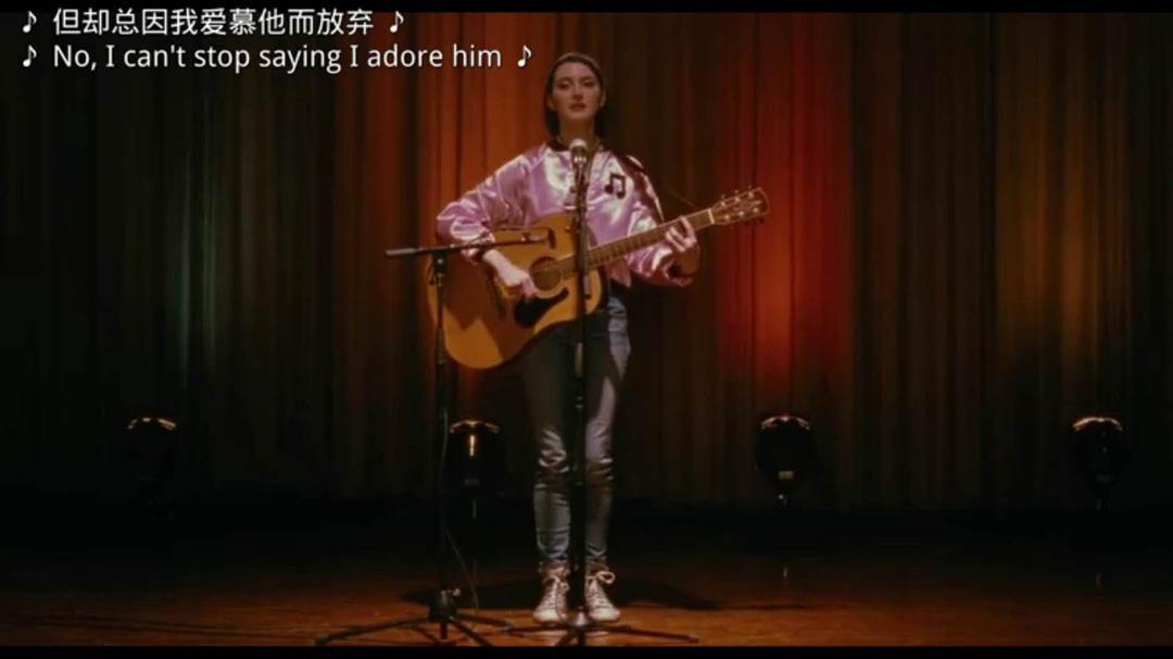 在这样的一个偏重角色研究的故事中,主角的出场方式极为重要,而《从不》以一种非常干净而高效的方式构建出了Autumn生活的世界和每日所所经历的日常。《从不》的开场是一场复古风情的高中才艺汇演,当Autumn的同学们表演着拙劣的猫王模仿秀和50年代男女混搭歌舞时,Autumn用吉他伴奏唱着一首悲伤的歌。虽然她穿着有些滑稽的外套抹着银色亮片眼影,她眼神和歌声中流露的心事已经让她和同龄人身处不同时空。