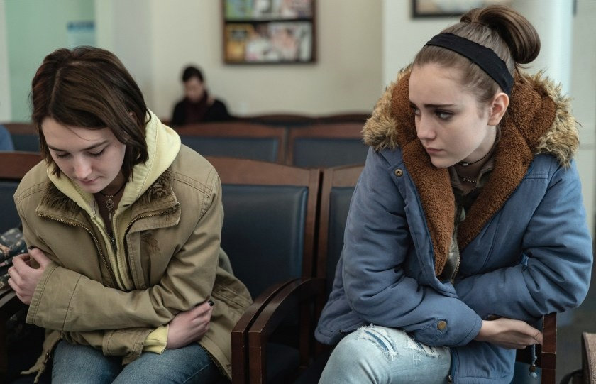 《从不》的剧情很简单:意外怀孕的17岁少女Autumn在发现宾州法律规定必须有一位家长知情才能堕胎之后,和关系亲近的表姐Skylar踏上了去纽约堕胎的旅程。