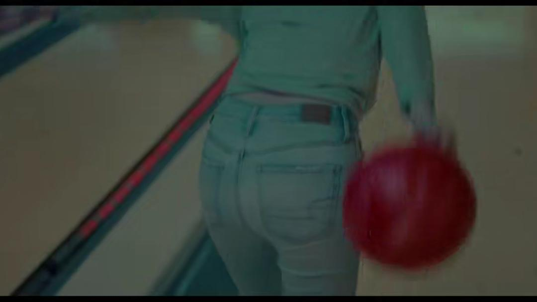 除了这一幕,影片还有一个地方也表达着窥视感,autumn和skylar与搭讪男一起去往保龄球馆,当skylar扔保龄球时,镜头是这样的