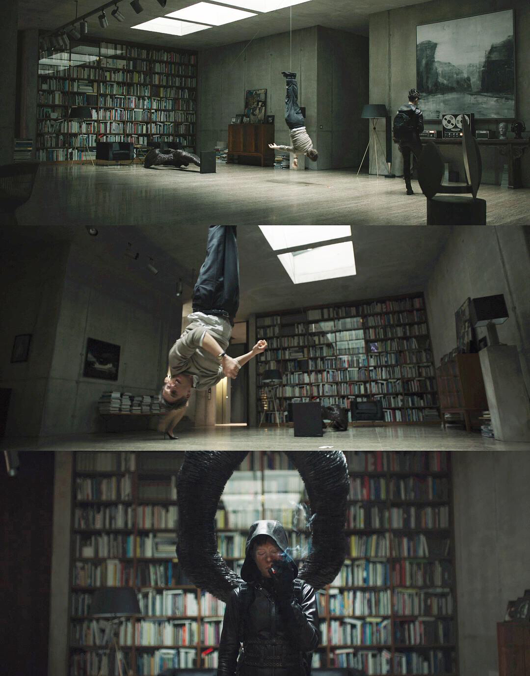 而除了剧情的平庸,影片本身的分级也不再如上一部那样残暴,在上一部几乎是狂欢一般地展现各种黑暗面之后,蜘蛛网里面的女孩对于暴力,性,还有人性的黑暗等元素都刻意地进行了淡化,以至于全片尺度最大的竟然是...女主的裸背?