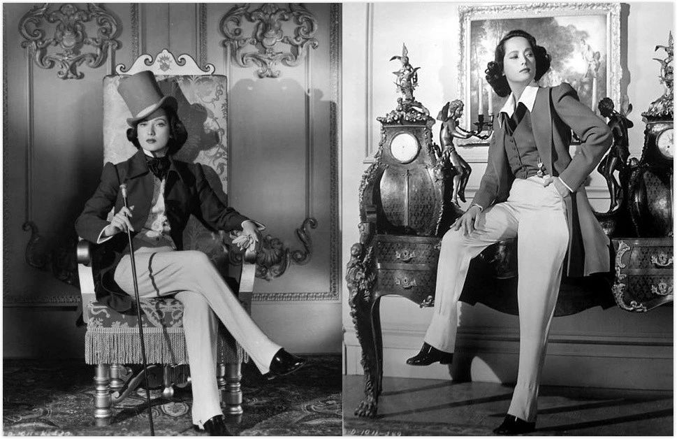 1930年,女演员玛琳·黛德丽在电影[摩洛哥]中穿长裤套装,被警察以“有伤风化罪”拘留。