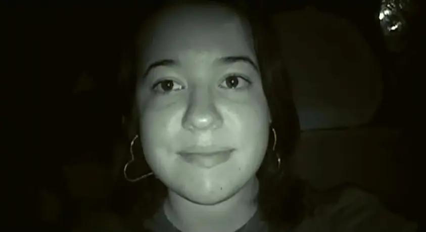 然后面对镜头,她露出微笑。