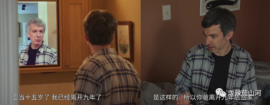 恶人和Nathan,不变的都是,手中握住“权力”的一方,执掌倒带大权。这个颇具艺术性的镜头(15岁儿子钻进滑梯,滑出来的是6岁的儿子),加上15岁儿子从滑梯迷茫钻出的镜头后,笑点又攀上新的高峰,along with some kind of怅然若失。