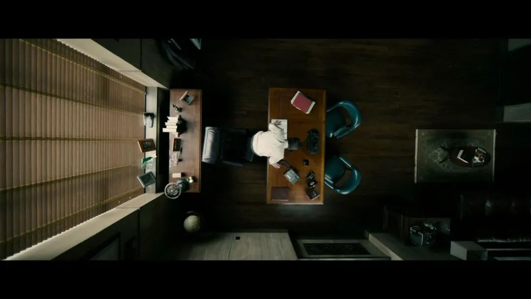 一个极简的空间。灰暗的色调、空荡的陈设,矮仄的镜头。空间中的声响只有磁带中那盘录音,底噪滋滋之中,近乎窒息的呼吸声,残酷到乏味。仿佛报案人发出的才是死者临死的喘息。巴克斯特家族的教父悄无一声,轻轻颤动的身躯和紧紧纠结的五官却难掩内心苦痛。一遍听完,再又一遍。除了寻找凶手的线索,他还在寻找什么吗?儿子死前的任何声息?这是录音中没有记录下来的。
