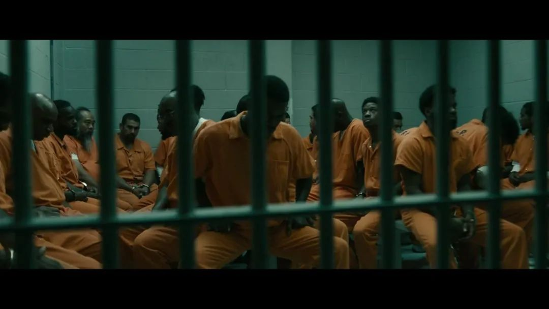 巴克斯特家族的教母收束妆容,神情高贵却哀伤,她的目的地是关押长子的监狱。教母的豪车行经监狱外围时,有一个对比性很强的镜头,教母与车体占据主要部分,角落中挤压着一队扛着劳动工具的黑人囚犯一闪而过,他们前头监工的是两名骑着马的警察。教母坐在车中,隔着厚厚的车窗,从黑色的镜片后,漠然看着窗外的景象,少顷,车窗合上。车窗内外,是再明显不过的隔离隐喻,教母对自己的儿子那样爱怜,却对别的人遭遇不屑一顾。