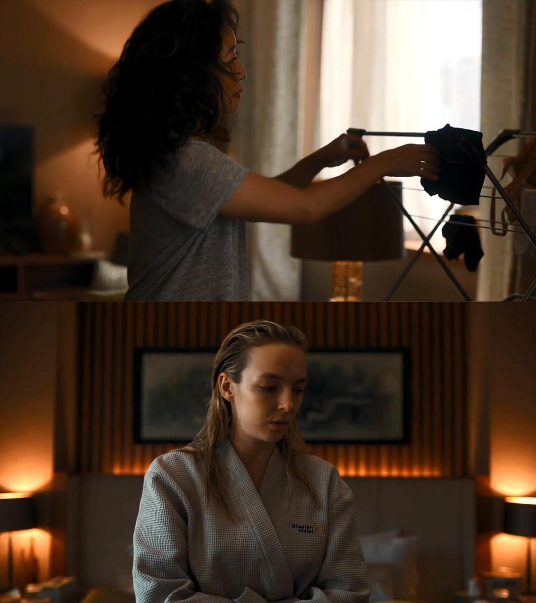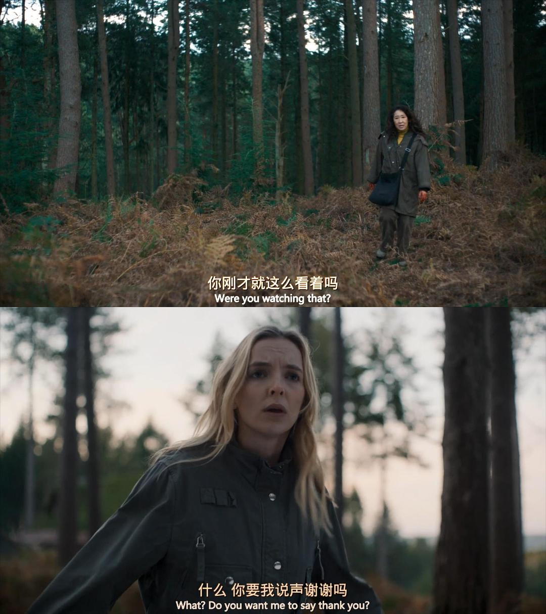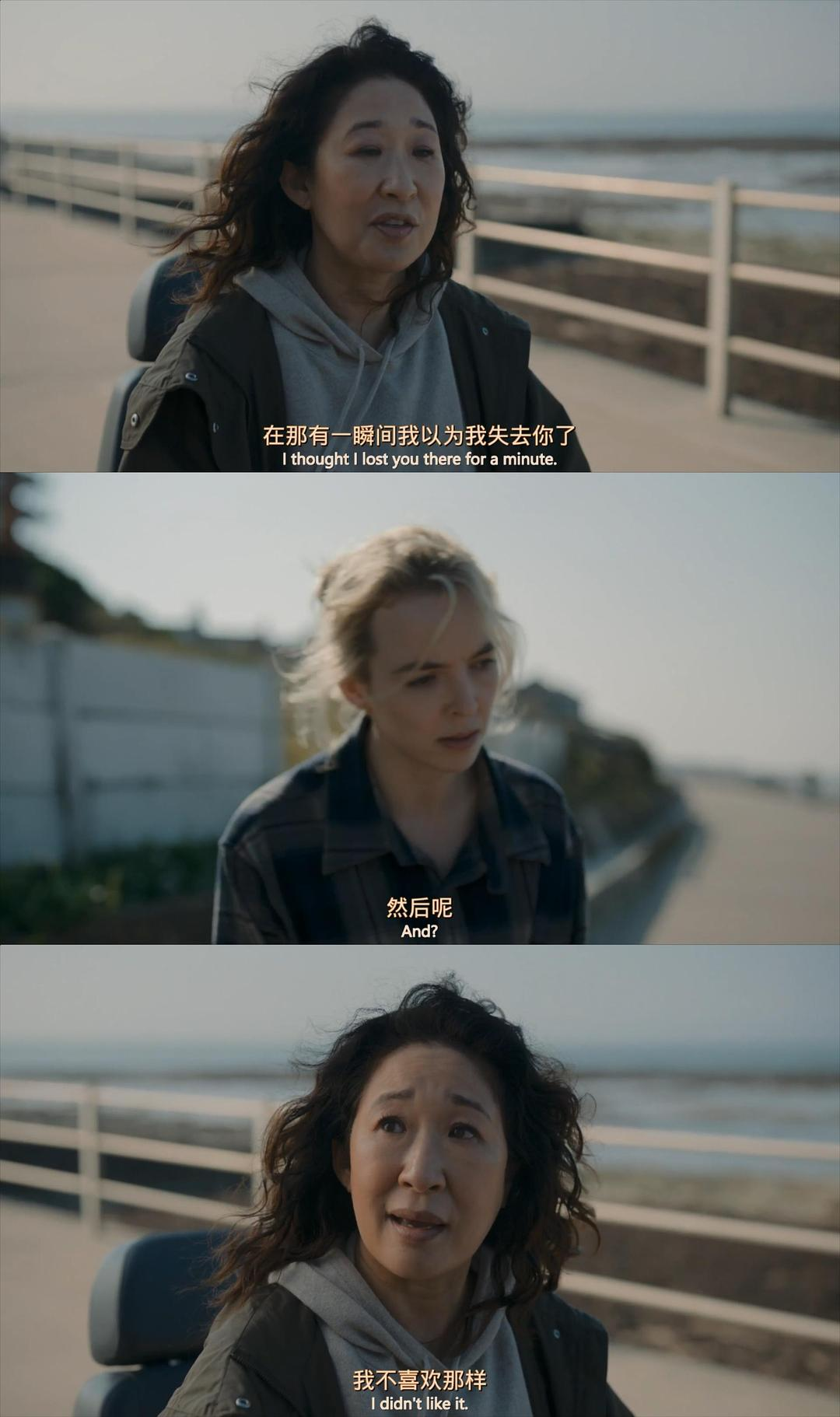 这段戏我个人认为比桥上的互诉告白还要重要,此刻就是Eve 的killing Eve时刻,E心理上终于迎来了直面完整自我的时刻,承认自己的既往经历,正视自己的欲望。杀死在“忘失的存在状态”中那个庸常的自我,开始往更高的“念兹忘兹的存在状态”迈进。