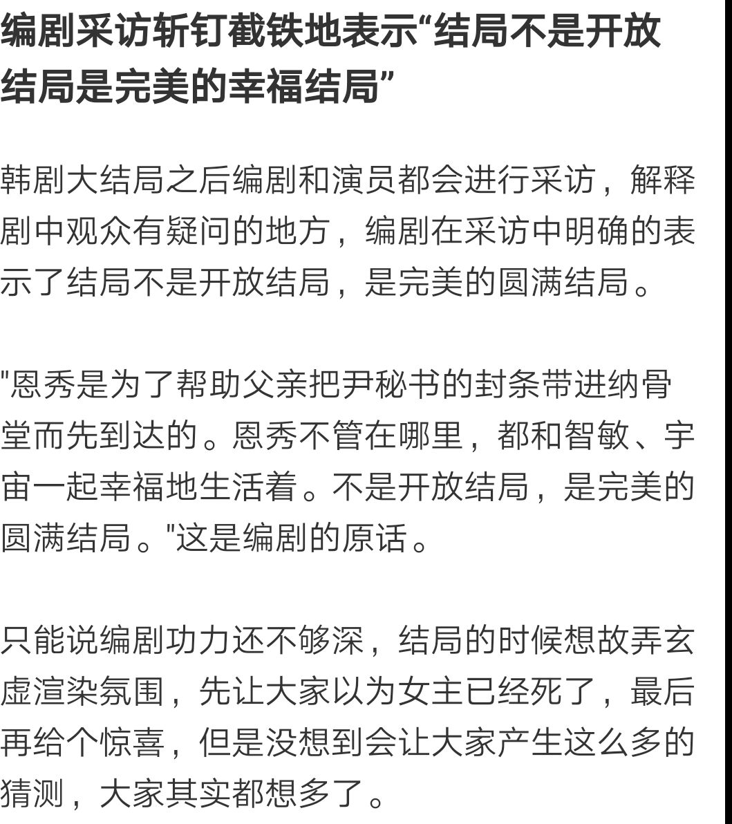 最后,附上被认证的结局辟谣图。个人很喜欢这部李宥利欧尼的剧,花了点时间看和搜集证据