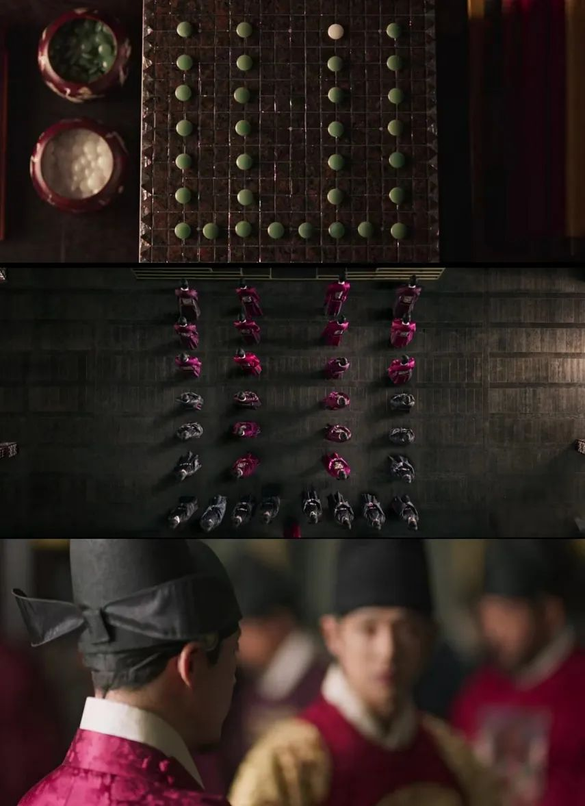 结合前面王下棋,以棋子喻臣子,殊不知王自己也是别人棋盘中的棋子!这场博弈,在导演巧妙的调度下越发显出趣味与智慧了。