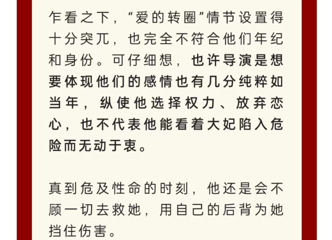 两人的爱意都体现在小小的细节里,他一眼就能看出她没睡好,见面就说会叫人开安神药;明面上见面一句话也不能说,但是擦身而过时故意碰到她的衣袖。